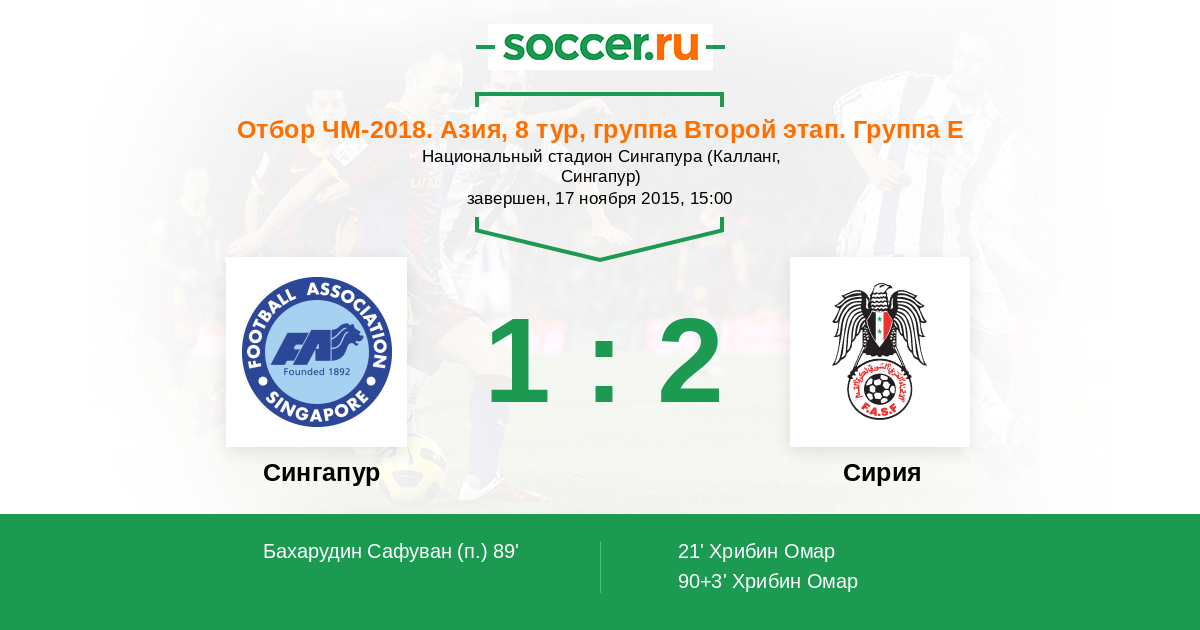 | Сингапур | 0:3 | 0:0 | 0:3 |