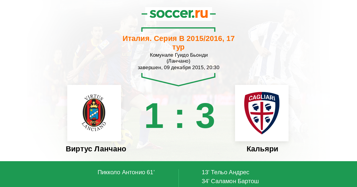 | Виртус Ланчано | Кальяри | |