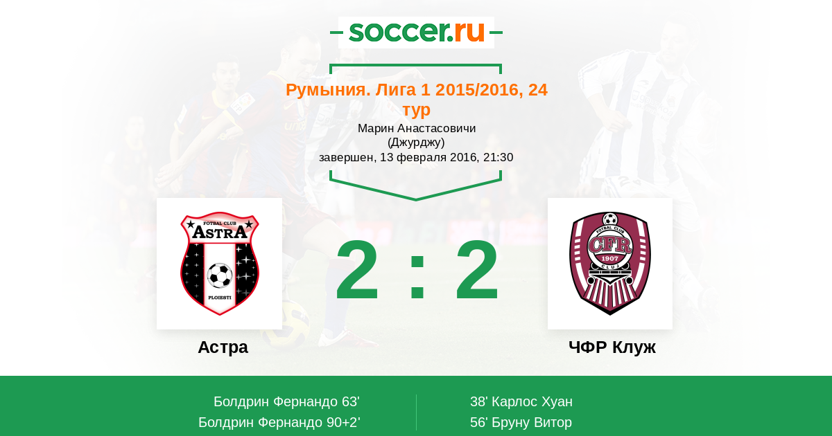 | ЧФР Клуж | 55:29 | 28:13 | 27:16 |