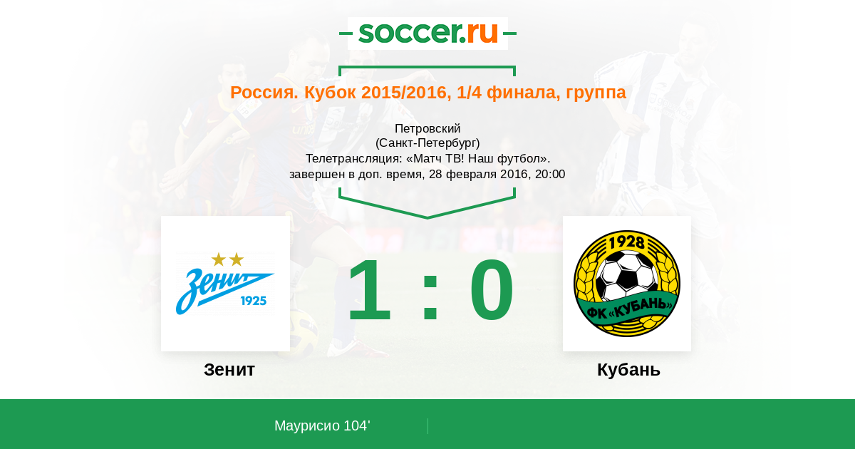 | Зенит | Кубань | |
