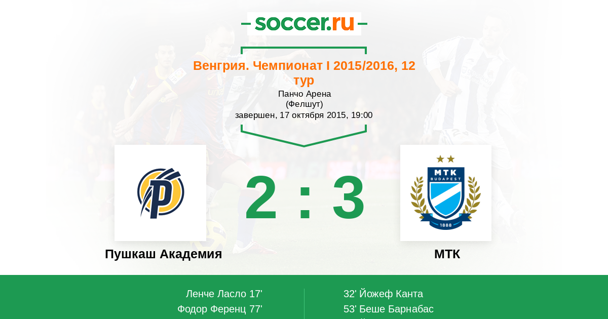 | Пушкаш Академия | 33:22 | 18:14 | 15:8 |