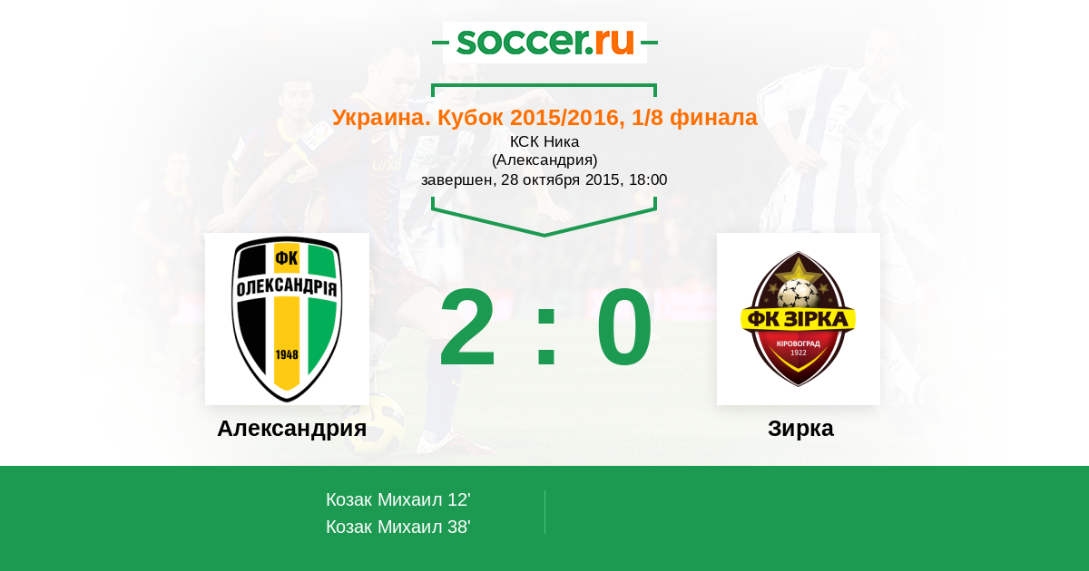 | Александрия | 21:9 | 11:4 | 10:5 |