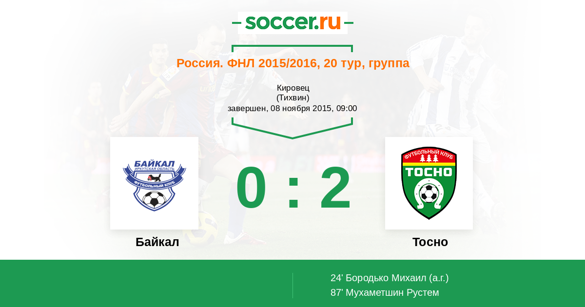 | Байкал | 0:1 | 0:0 | 0:1 |