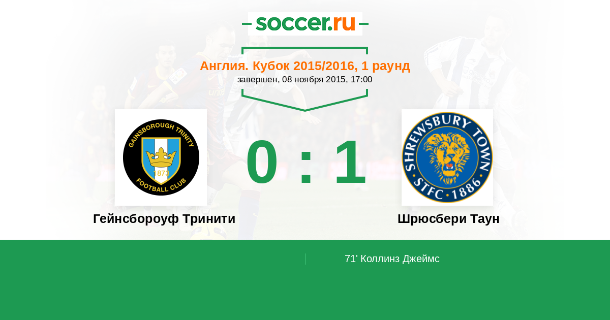 71' (0:1) Коллинз Джеймс (9) (Вернон Скотт)