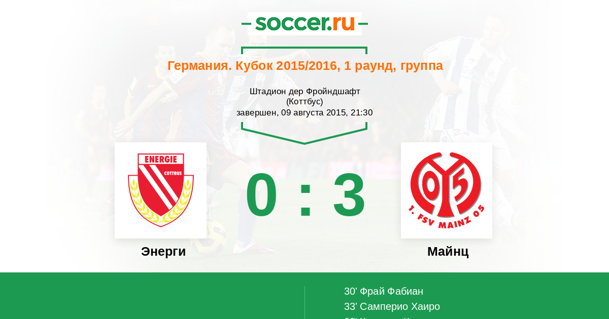 30' (0:1) Фрай Фабиан (20) (Клеменс Кристиан (27))