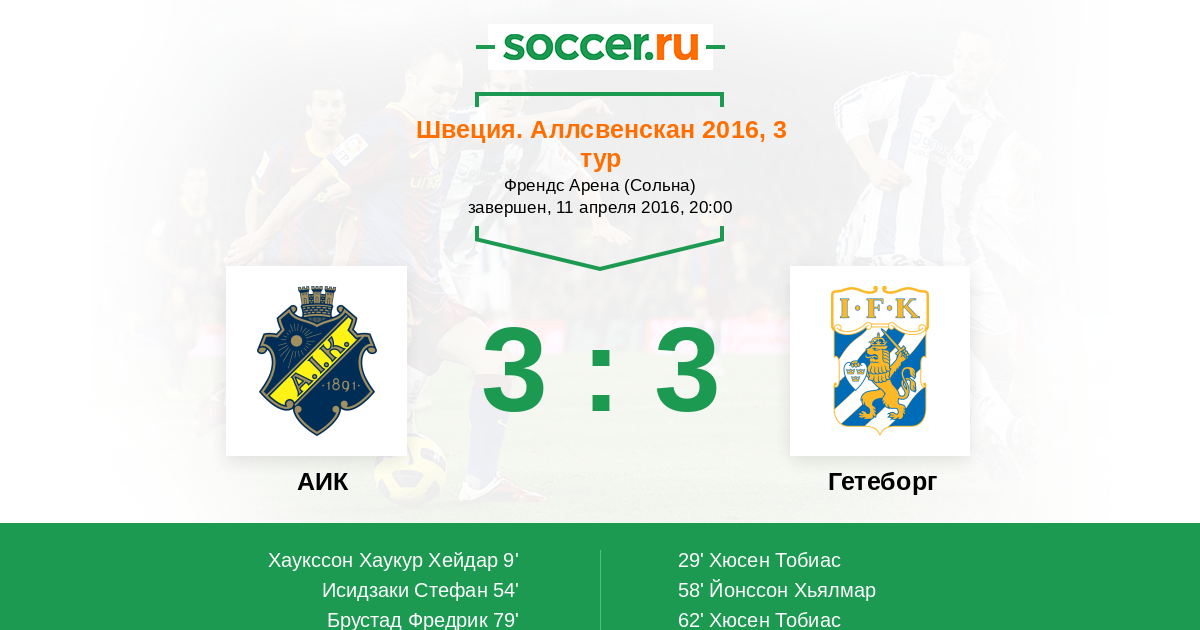 Запасные: 11 Смедберг-Даленсе Мартин (с 68'), 16 Боман Микаэль (с 73'), 20 Виктор Шольд (с 88'), 12 Дальберг Понтус, 13 Альборнос Маурисио, 18 Лаусон Сабах, 27 Нордстрем Билли