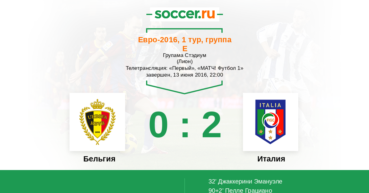 32' (0:1) Джаккерини Эмануэле (23) (Бонуччи Леонардо (19))