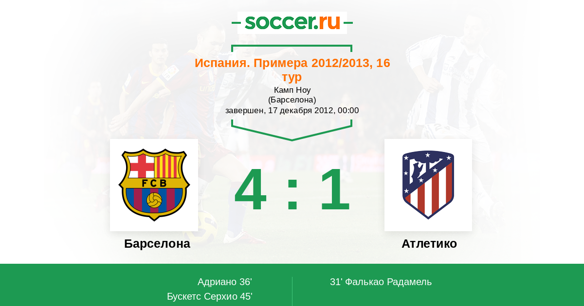 36' (1:1) Адриано (21) (Иньеста Андрес (8))