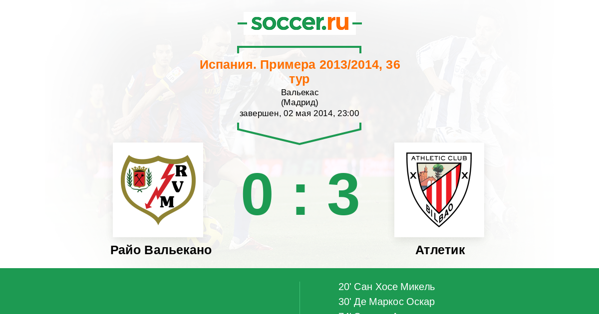 20' (0:1) Сан Хосе Микель (6) (Сусаета Маркель (14))