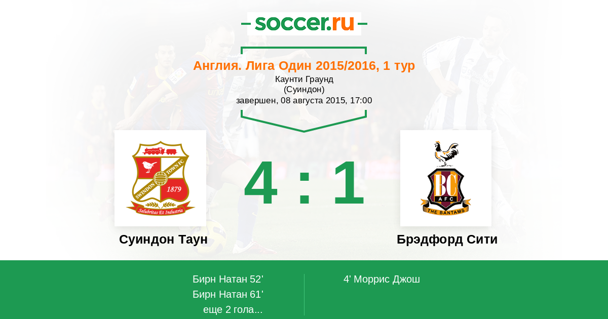70' (4:1) Обика Джонатан (20) (Тернбулл Джордан (6))