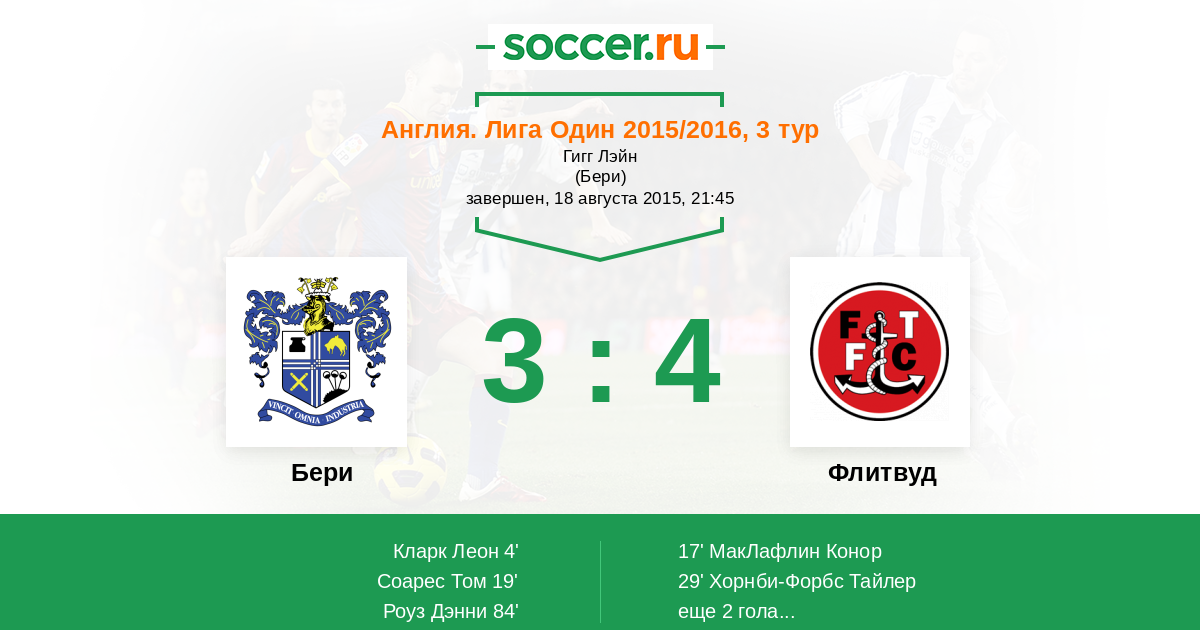4' (1:0) Кларк Леон (9) (Том Поуп (11))