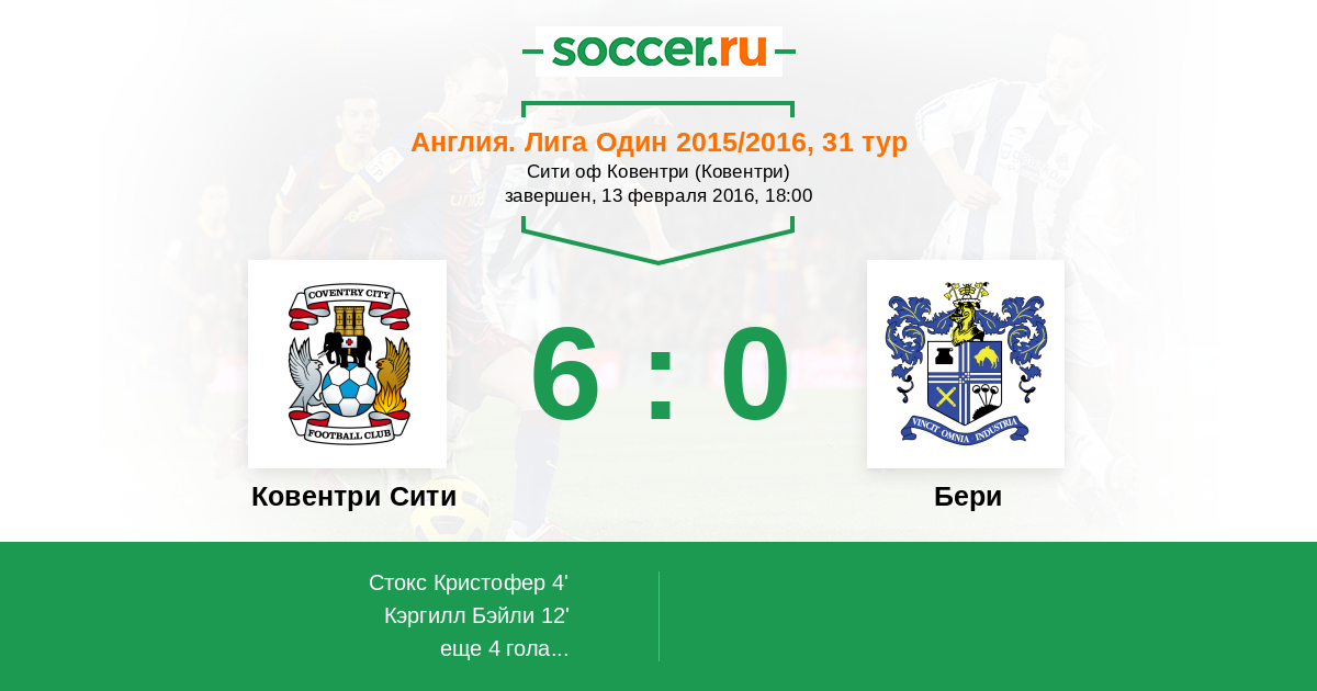 4' (1:0) Стокс Кристофер (3) (Коул Джо (14))