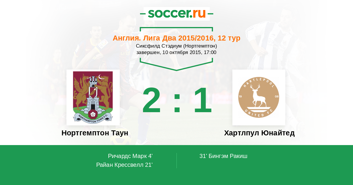 4' (1:0) Ричардс Марк (9) (Адамс Ники (10))