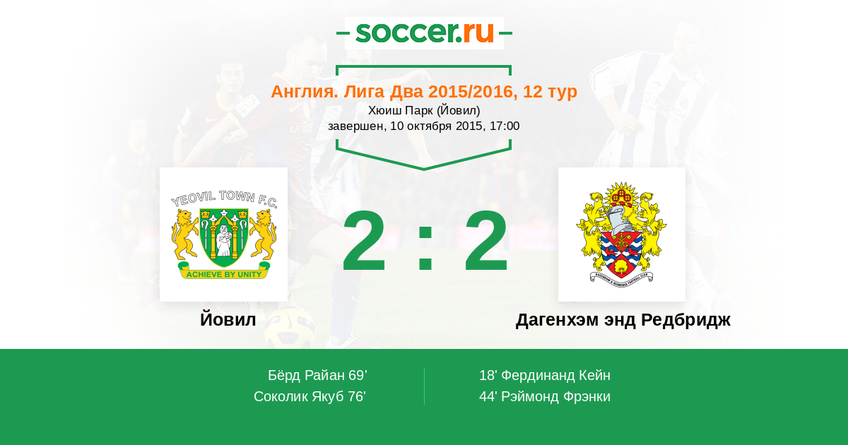 18' (0:1) Фердинанд Кейн (25) (Чамберс Эшли (10))