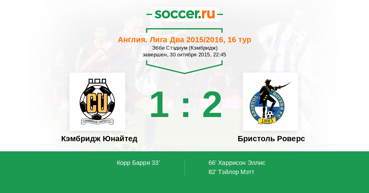 33' (1:0) Корр Барри (10) (Данк Харрисон (11))