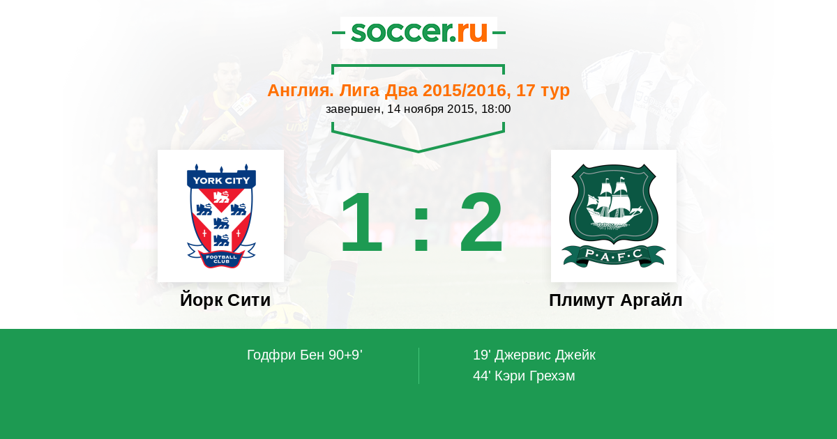 19' (0:1) Джервис Джейк (14) (Кэри Грехэм (10))