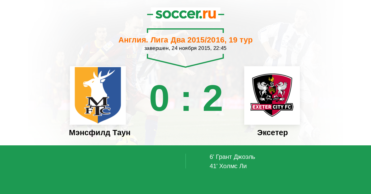 41' (0:2) Холмс Ли (10) (Грант Джоэль (31))