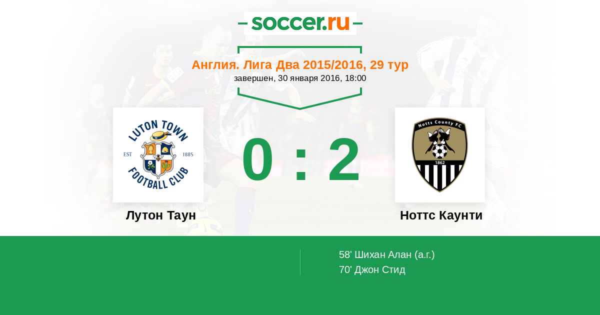 70' (0:2) Джон Стид (30) (Смит Алан)