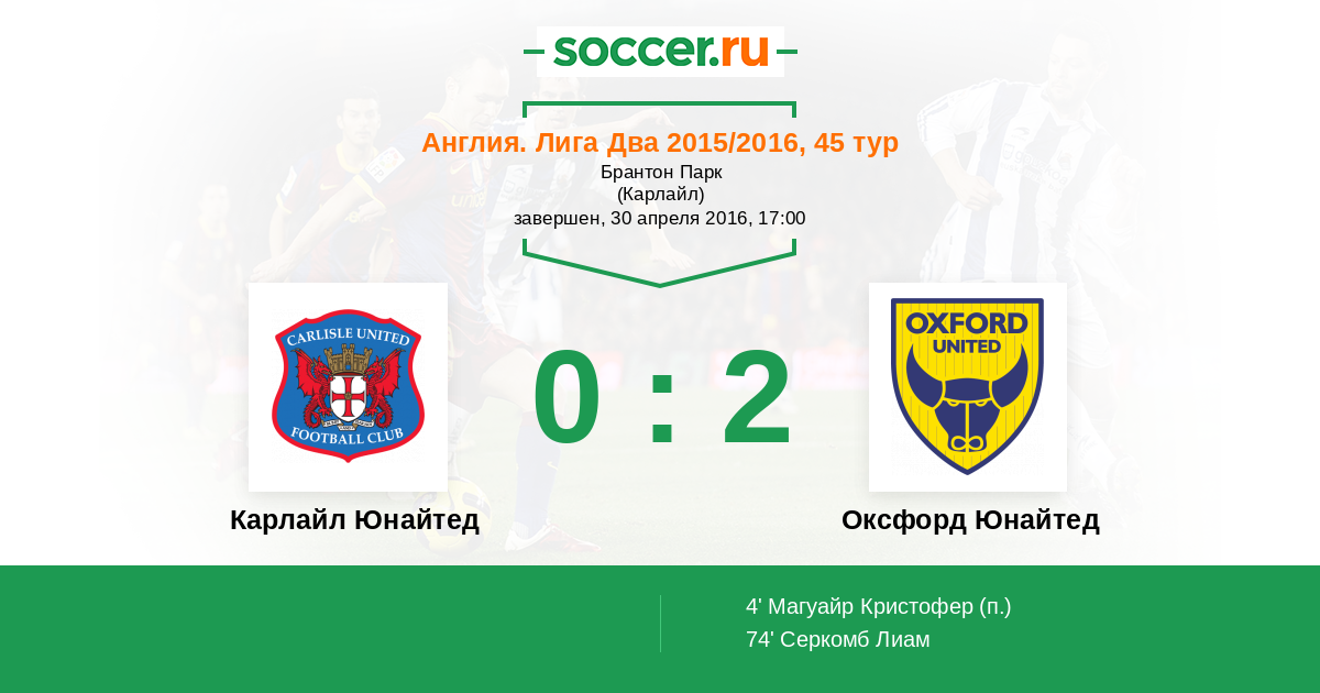 Карлайл Юнайтед - Оксфорд Юнайтед