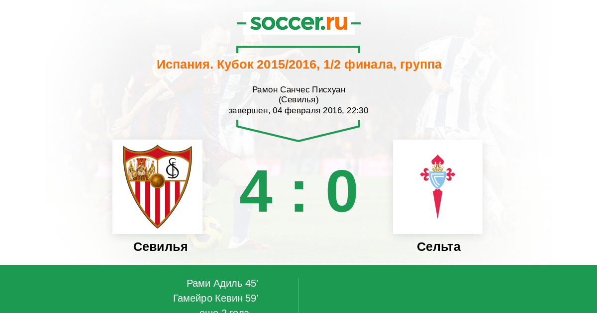 62' (3:0) Гамейро Кевин (9) (Банега Эвер (19))