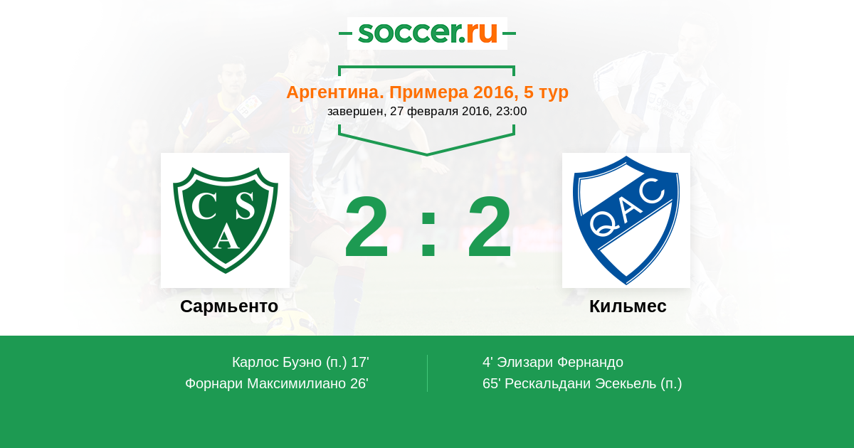 65' (2:2) Рескальдани Эсекьель (9)