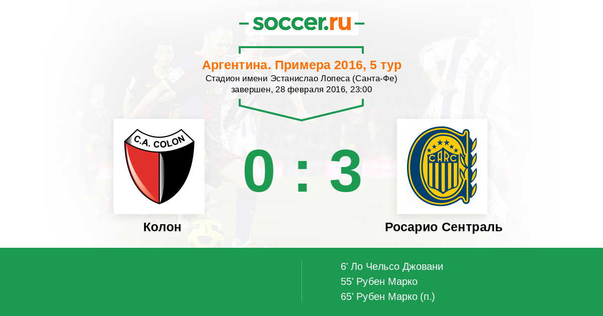 Запасные: Кастильо Луис (с 46'), Беруцци Адриан (с 46'), Силва Николас (с 71'), Паломеке Кристиан Андрес, Байло Андрес, Мазурек Франко, Ибербиа Рауль