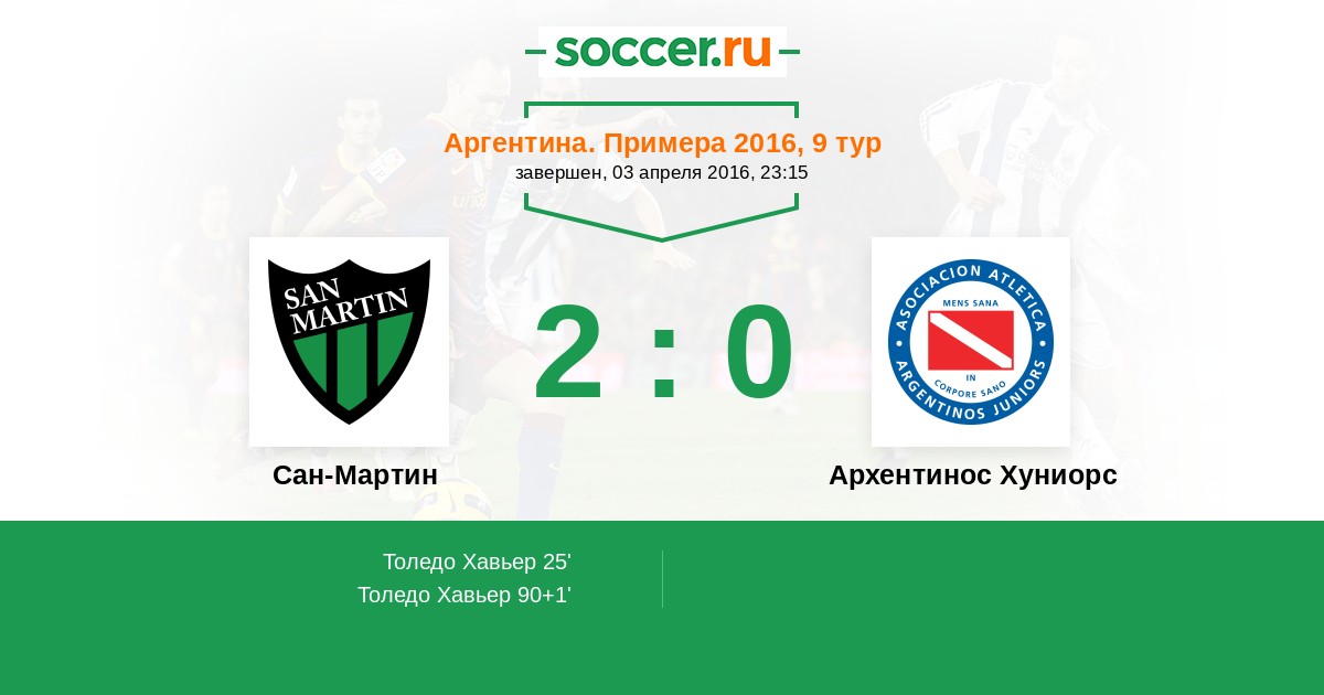 25' (1:0) Толедо Хавьер (9) (Гонсалес Даниэль (7))