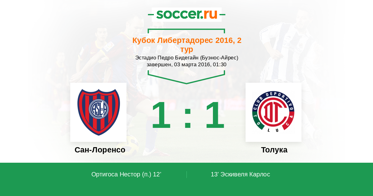 13' (1:1) Эскивеля Карлос (11) (Триверио Энрике (21))