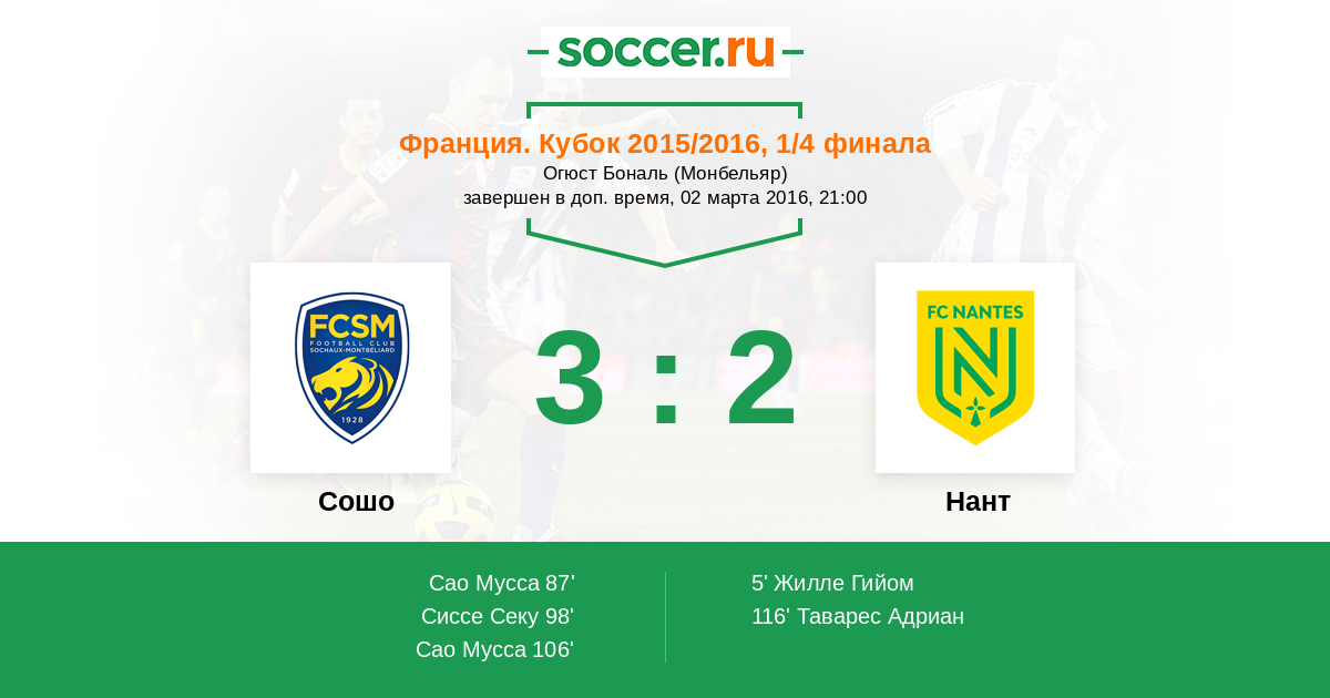 87' (1:1) Сао Мусса (Пьер Гибу)