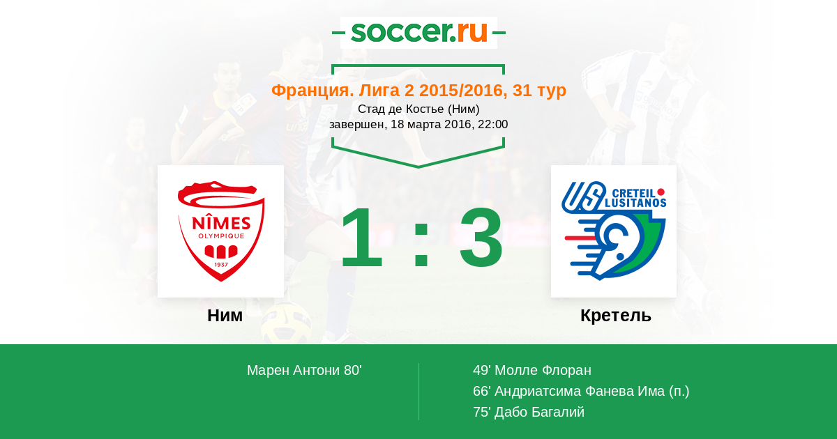 49' (0:1) Молле Флоран (19)