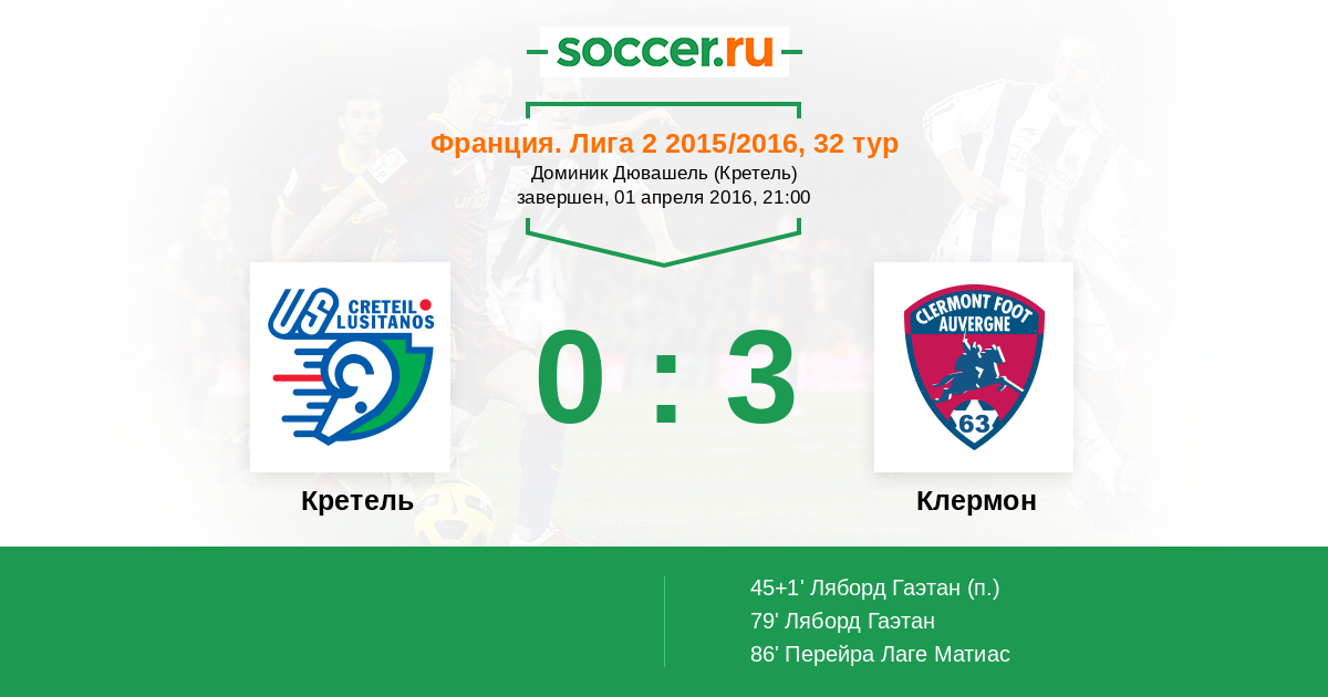 79' (0:2) Ляборд Гаэтан (9)