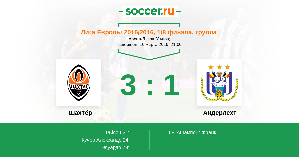 79' (3:1) Эдуардо (22) (Бернард (10))