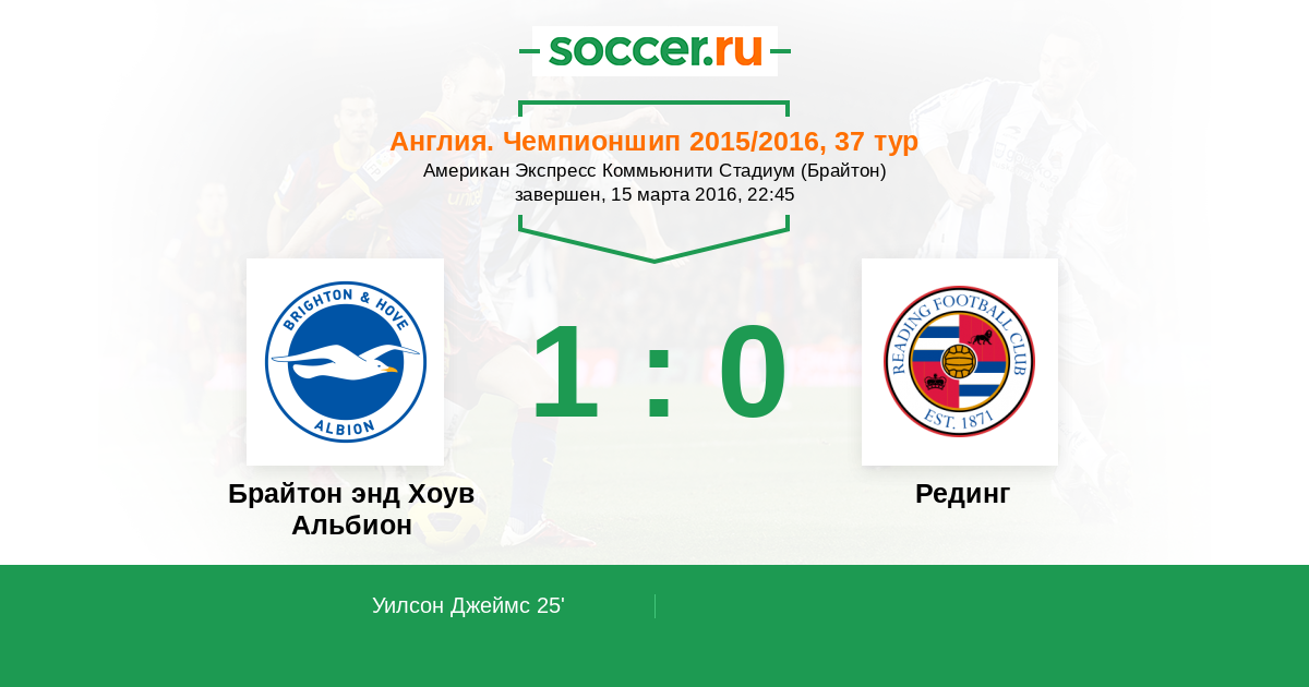 25' (1:0) Уилсон Джеймс (21) (Бэлдок Сэм (9))