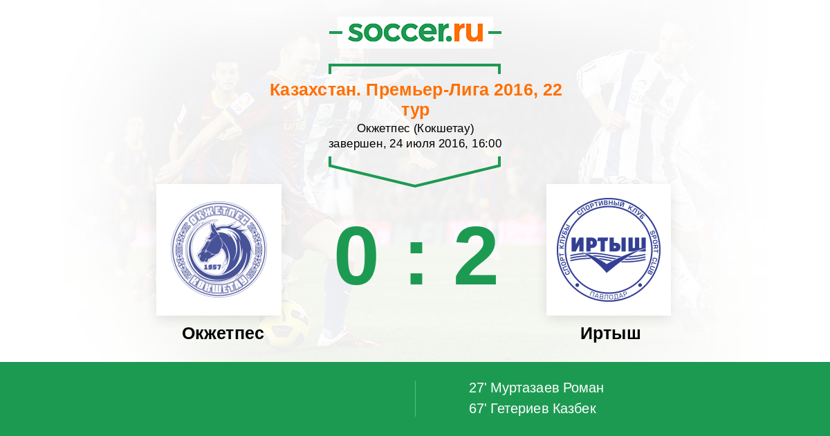 Запасные: Фалл Байе Джиби (с 46'), Алиев Пиралы (с 53'), Виталий Ли (с 90'), Аяганов Алибек, Цирин Антон, Воменко Владимир, Попов Артем, Назаров Игорь