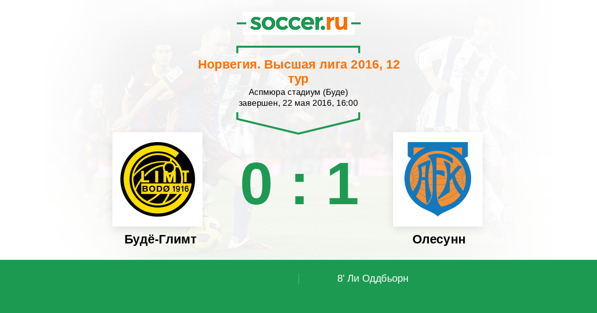 8' (0:1) Ли Оддбьорн (5)