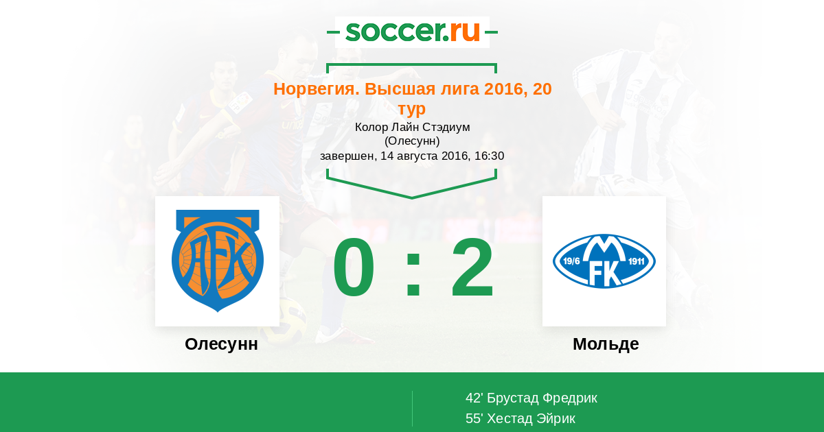42' (0:1) Брустад Фредрик (33) (Габриэльсен Рубен (4))