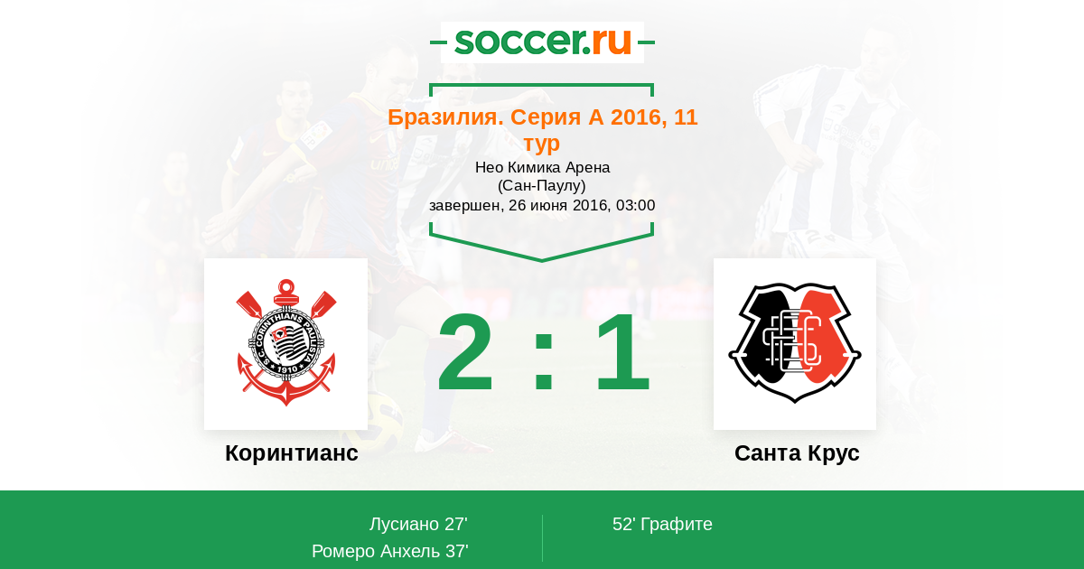 Запасные: 30 Лукка (с 69'), 10 Гильерме (с 83'), 5 Фернандес Виллианс (с 88'), 14 Сантос Лео, 32 Лео Принсипе, 8 Марлон, 13 Гильерме Арана, 19 Рилдо, 22 Майкон, 40 Каике, 29 Камачо де Агиар