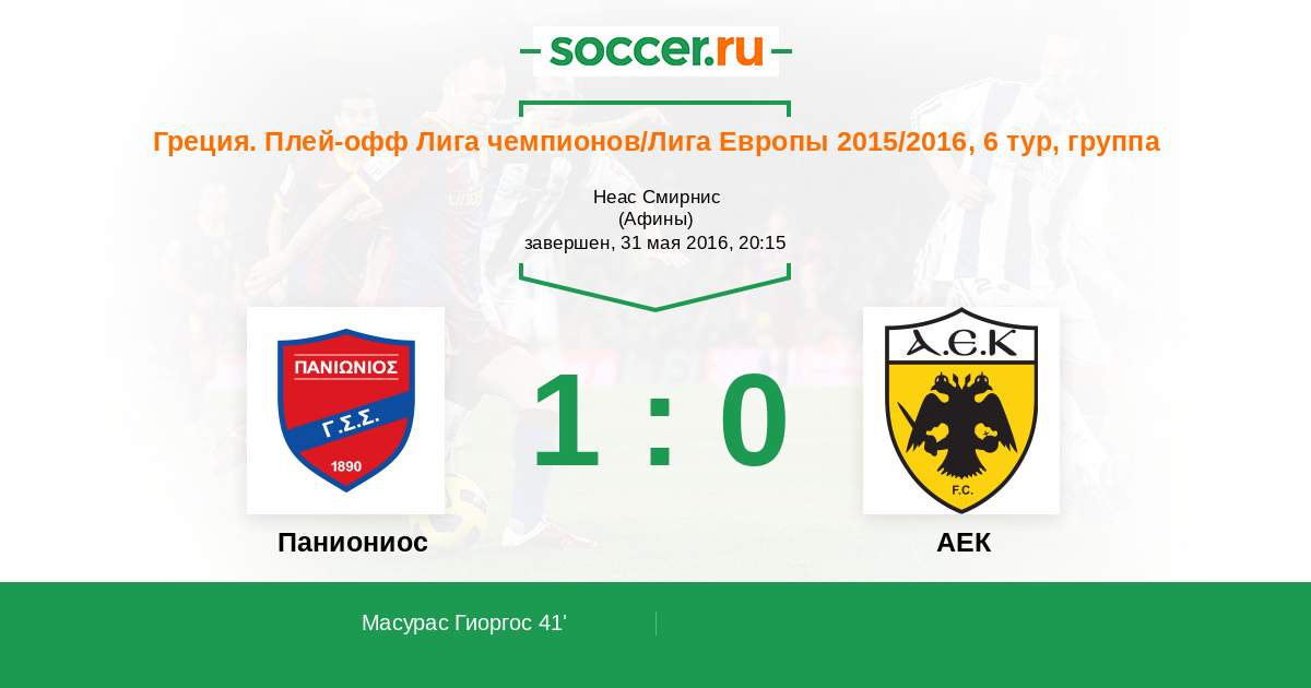 41' (1:0) Масурас Гиоргос (19)