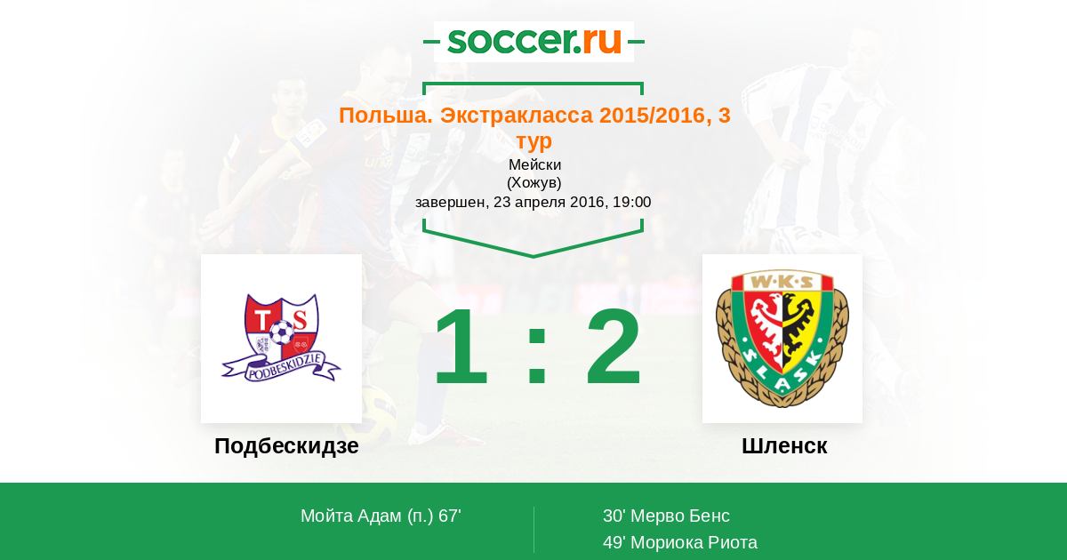 Запасные: 23 Демьян Роберт (с 52'), 11 Слобода Антон (с 66'), 14 Хмель Дамиан (с 74'), 25 Ярох Бартош, 32 Пацио, 83 Качмарек Войцех, 9 Колодзей Дариуш