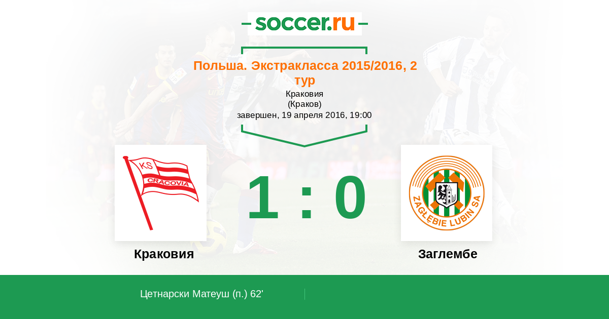 62' (1:0) Цетнарски Матеуш (10)