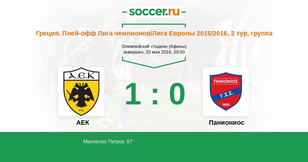 57' (1:0) Манталос Петрос (20) (Аравидис Христос (21))