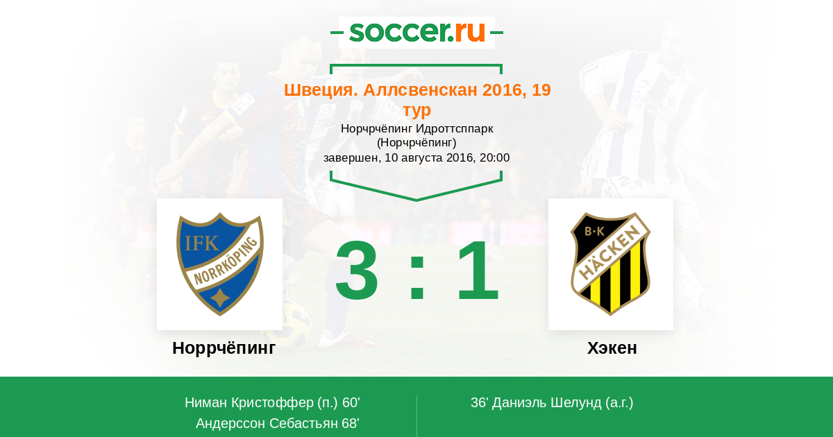 36' (0:1) Автогол Даниэль Шелунд (20)