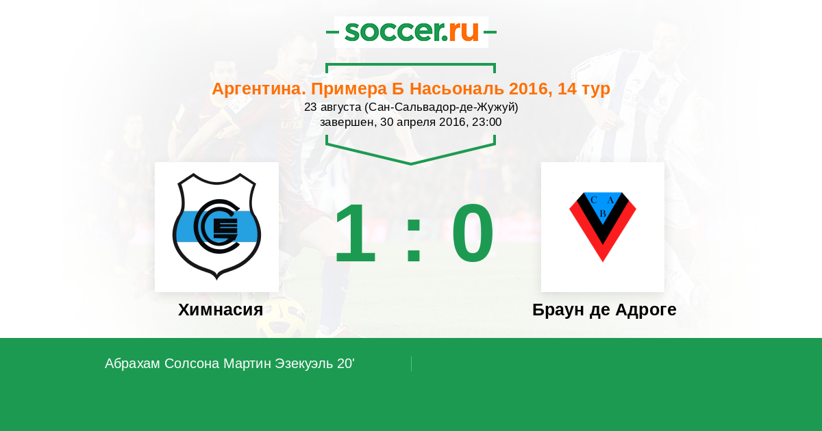 20' (1:0) Абрахам Солсона Мартин Эзекуэль