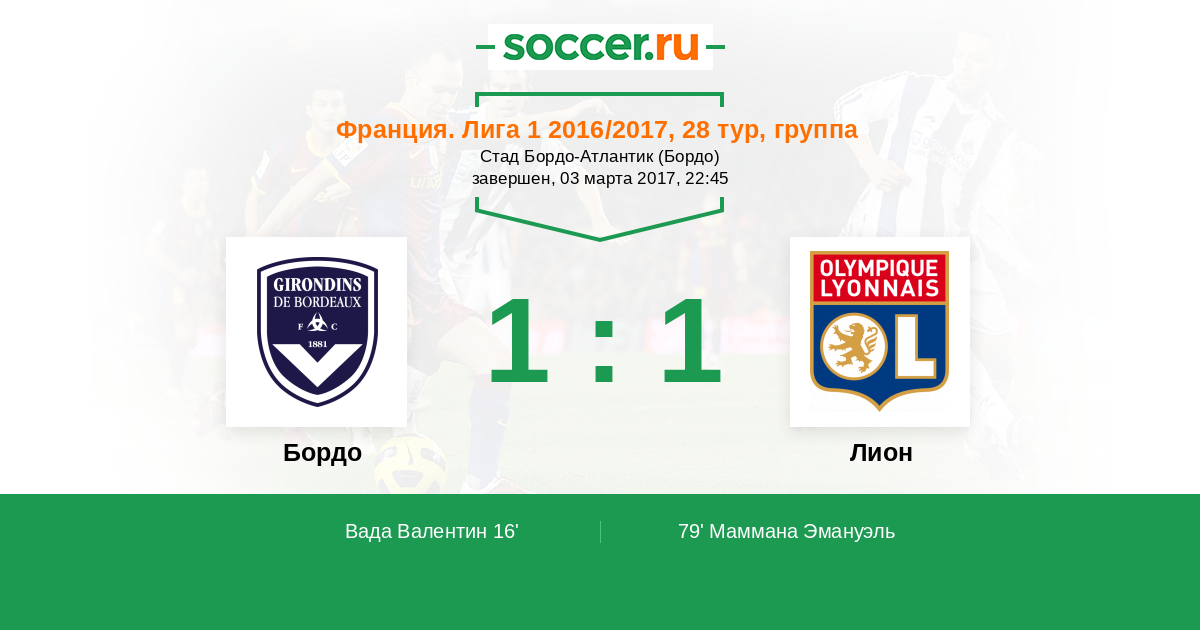 79' (1:1) Маммана Эмануэль (4) (Вальбуэна Матье (28))