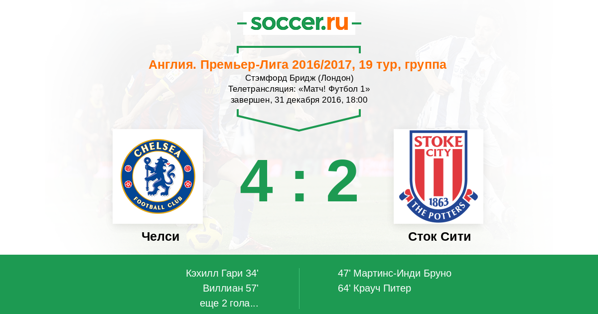 65' (3:2) Виллиан (22) (Фабрегас Сеск (4))