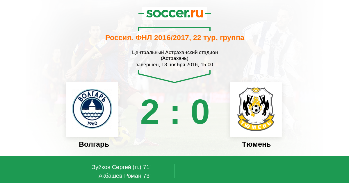 73' (2:0) Акбашев Роман (70)