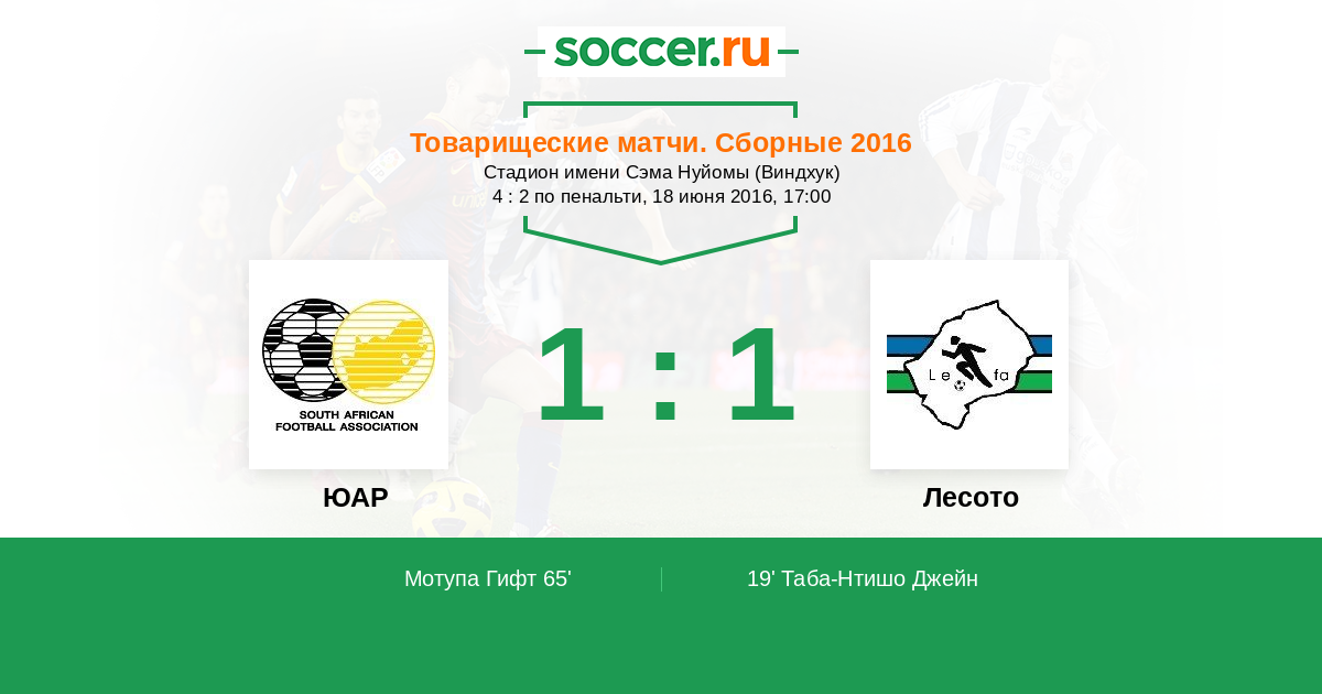 Запасные: 11 Мкаванази Мотломело (с 51'), 9 Мотебанг Сера (с 60'), 1 Мокейси Либохо (с 90'), 2 Малефане Сепирити, 4 Селло Боканг, 8 Тсосане Фафа, 15 Сонопо Монтоэли Клемент, 19 Сеахоа Табо