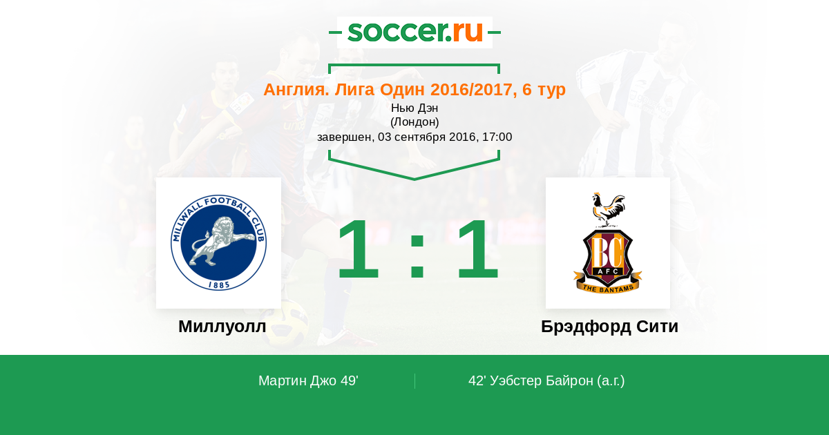 42' (0:1) Автогол Уэбстер Байрон (17)