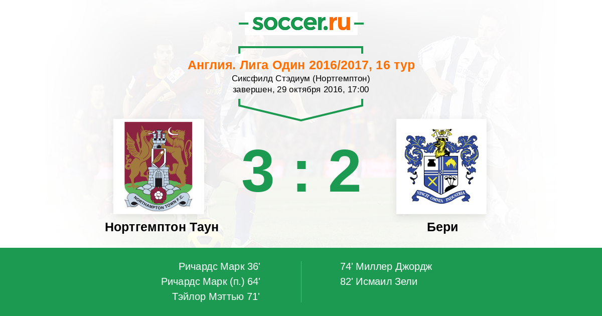 74' (3:1) Миллер Джордж (28) (Даннс Нил (16))
