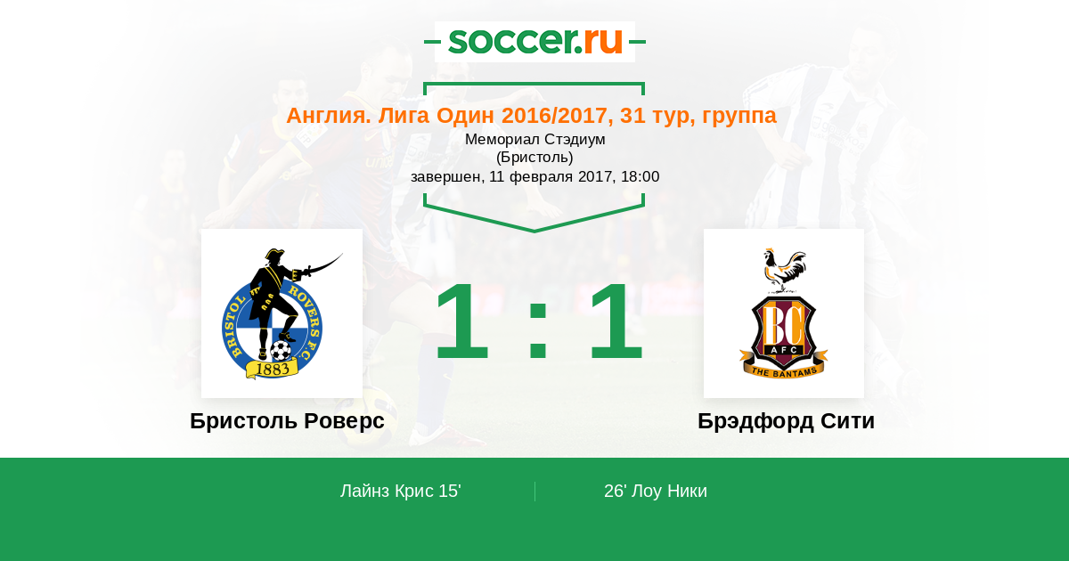 15' (1:0) Лайнз Крис (14) (Лидбиттер Даниэль (2))